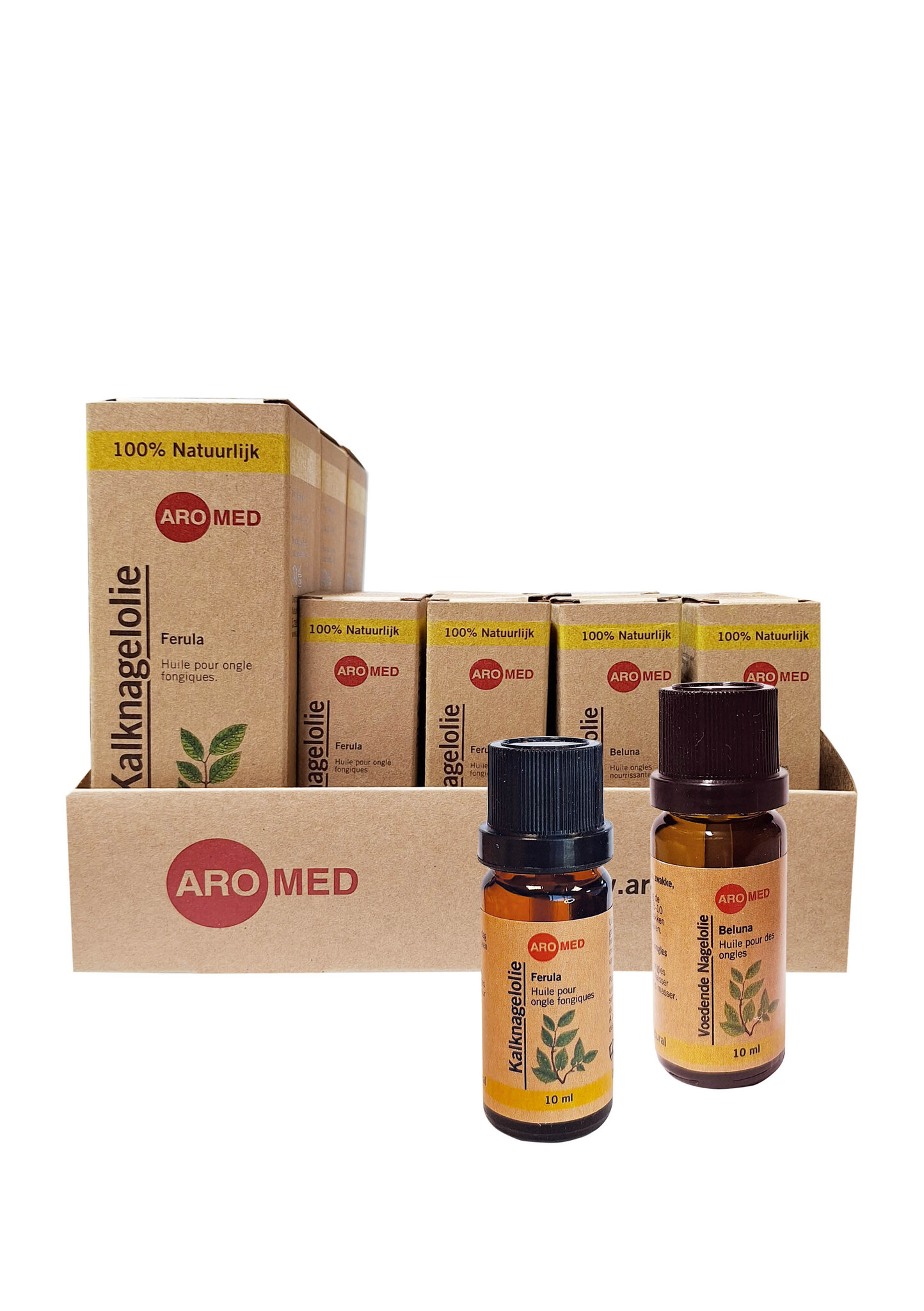Inhoud display: 3x Ferula Kalknagelolie 30ml, 8x Ferula Kalknagelolie 10 ml, 8x Beluna Voedende nagelolie