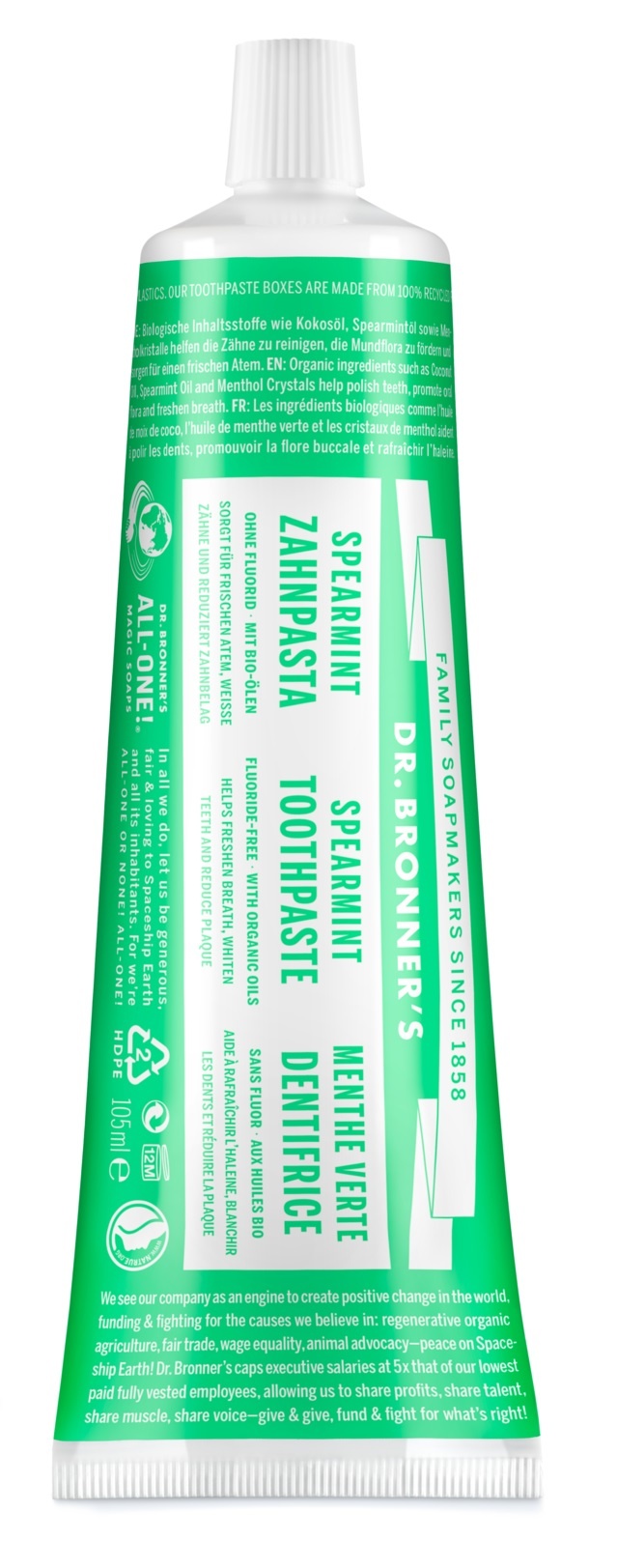 Dr. Bronner heeft behalve de populaire zepen nu ook eigen tandpasta!